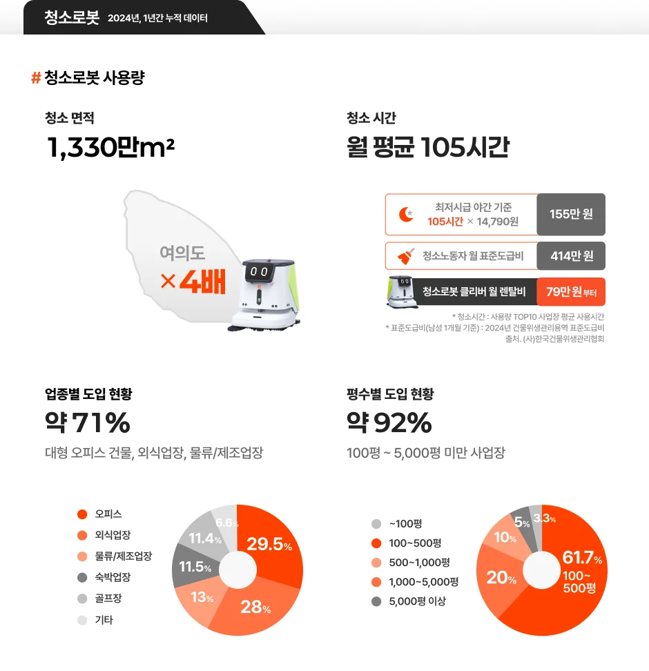 청소로봇 12개월간 여의도 4배 면적(1천330㎡) 청소 달성