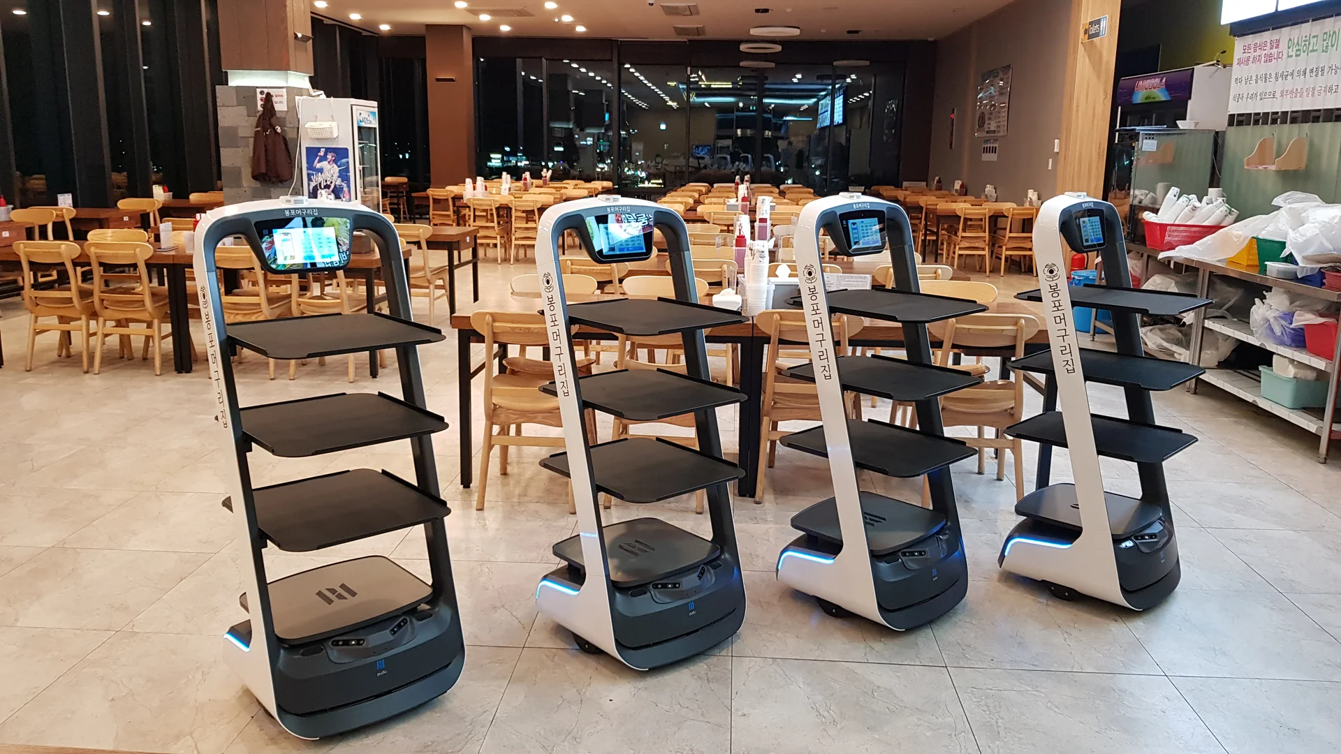 로봇이 스스로 테이블로 이동해 음식을 전달합니다.