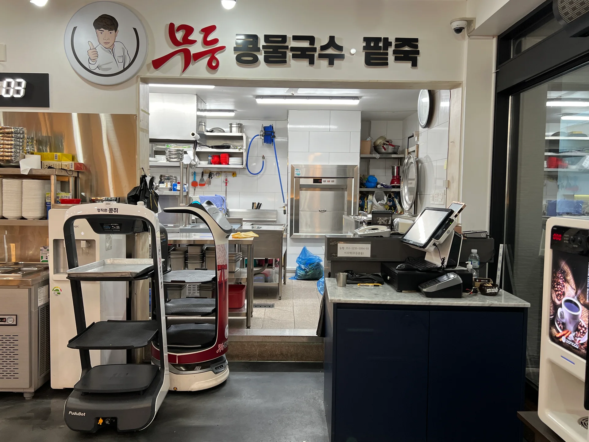 이런 장인정신 덕분에 광주맛집으로 자리 잡았지만, 장사가 잘될수록 피크타임 혼잡·인력 부족·회전율 저하 같은 고민도 커져갔습니다. 그래서 무등콩물은 한 단계 더 효율적인 운영을 위해 서빙로봇과 퇴식로봇, 그리고 테이블오더 시스템까지 도입하였는데요.