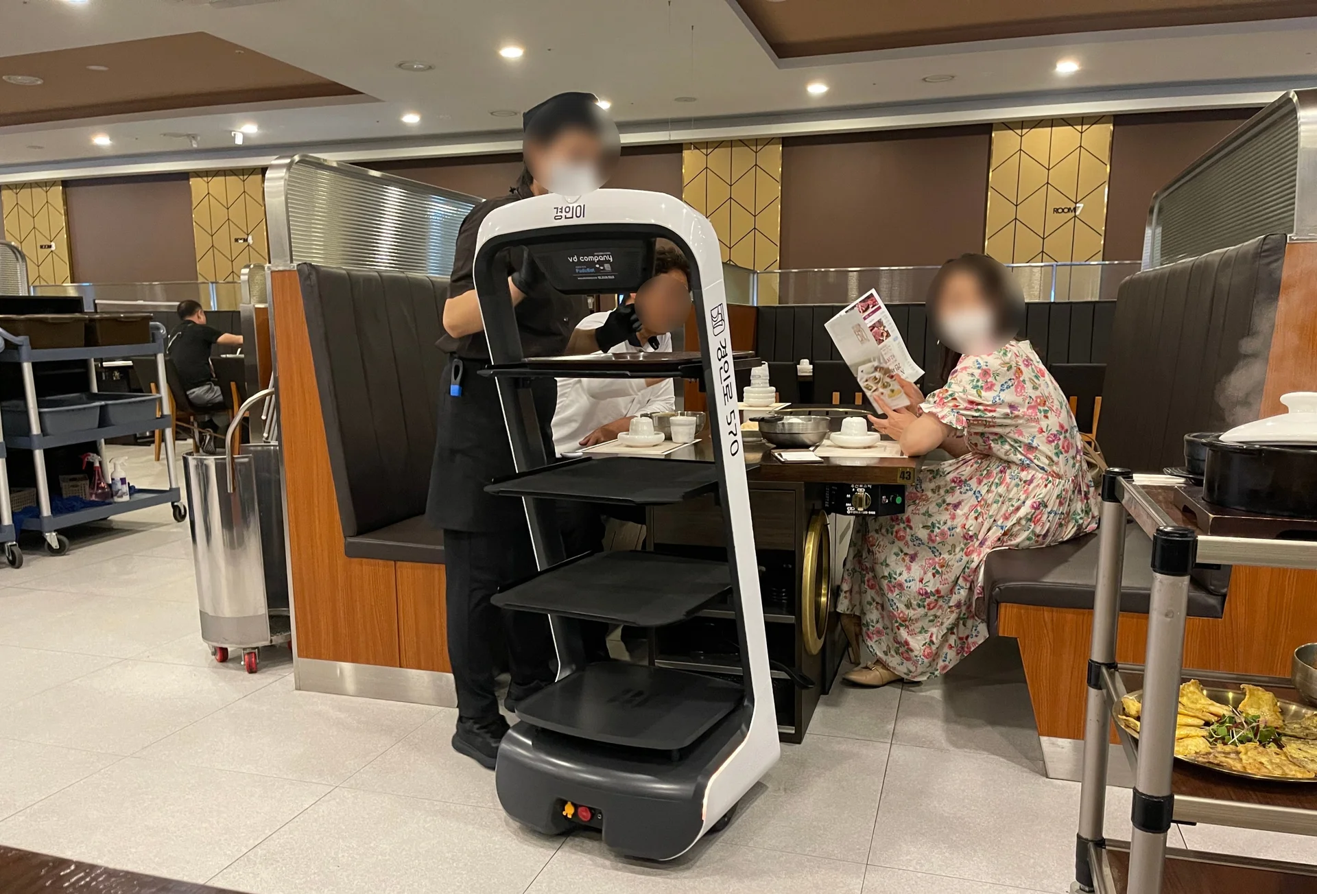 사장님께서는 서빙로봇이 마케팅 효과가 폭발적이라고 하셨는데요. 손님들은 로봇이 서빙하는 모습을 신기해하며 즐거워하고, 아이들과 어르신들이 로봇을 보기 위해 재방문할 정도로 반응이 뜨겁습니다.