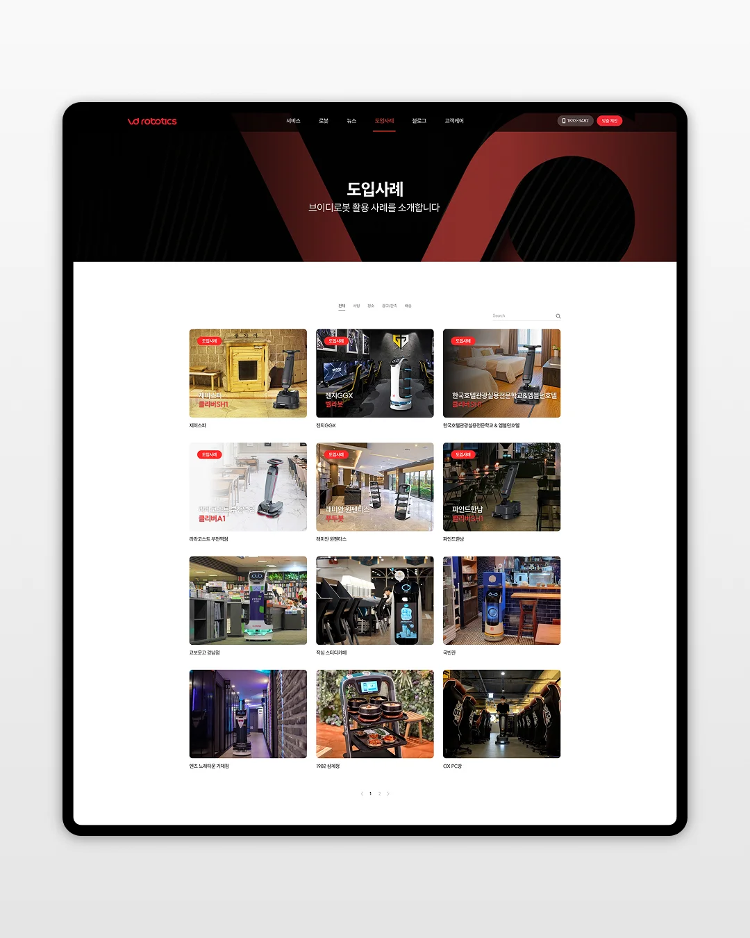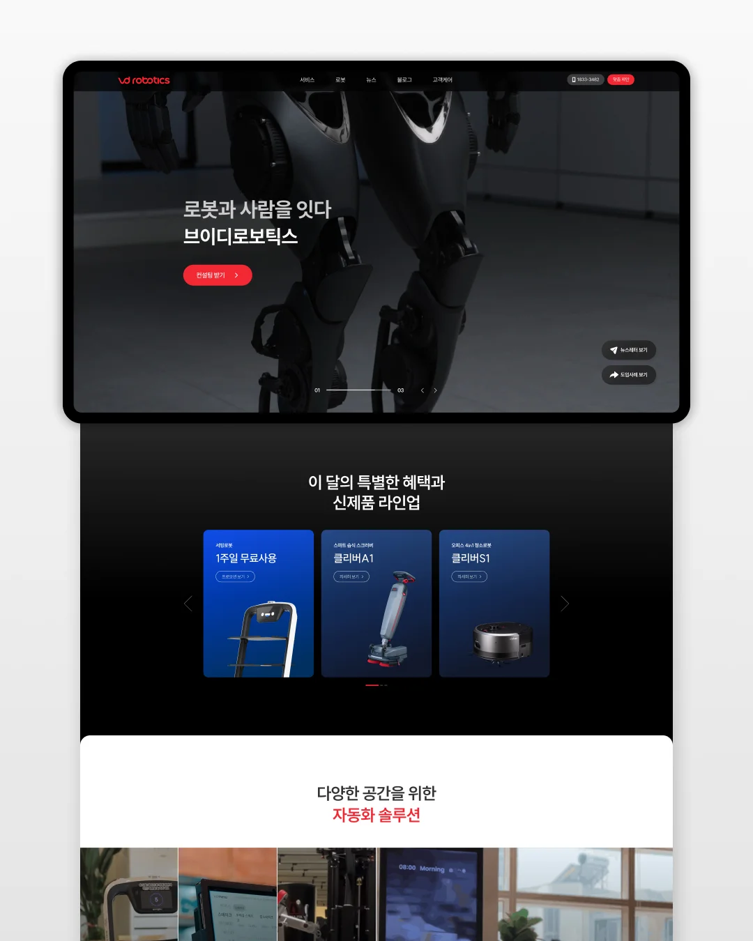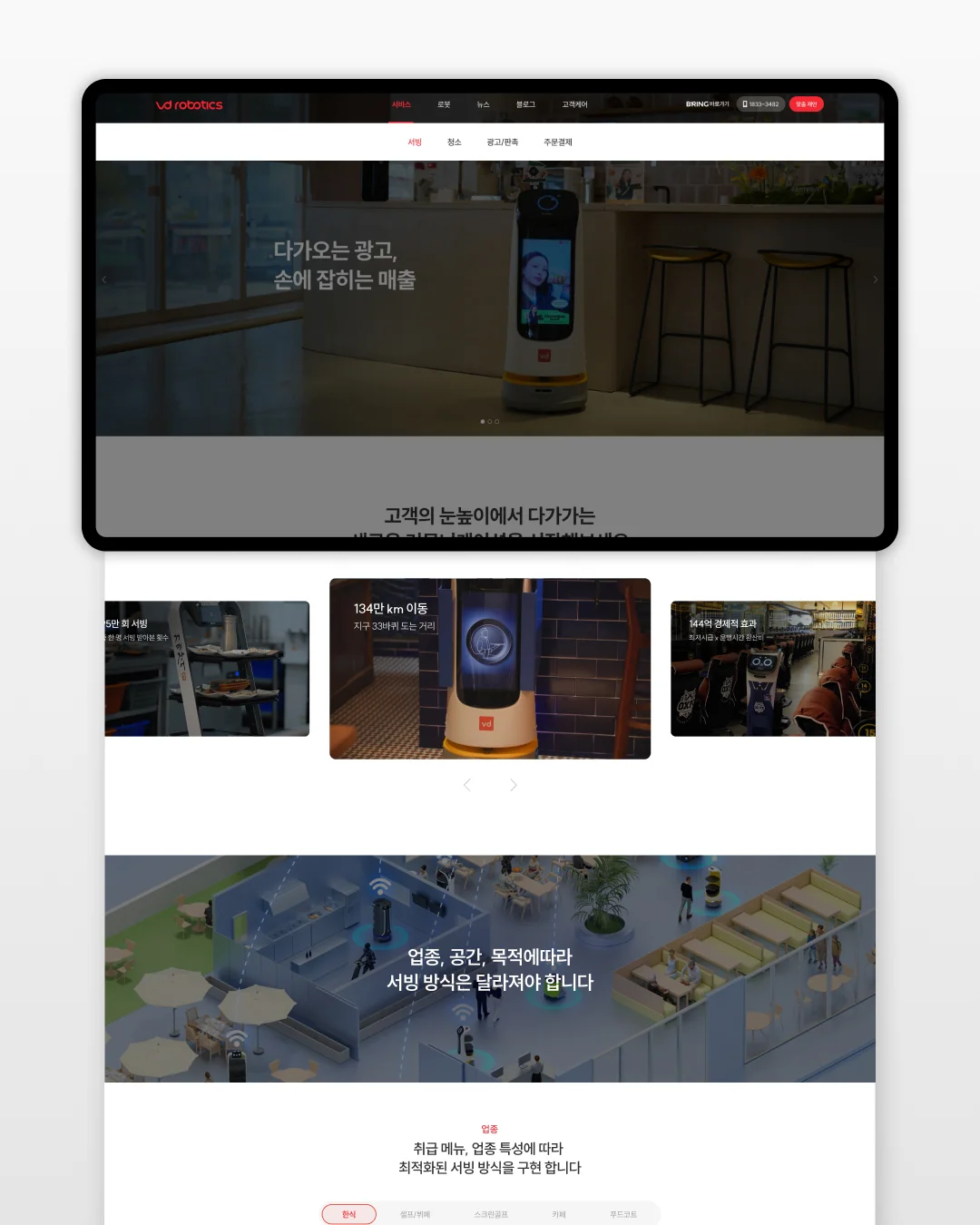 서비스로봇 기업의 방향성을 한눈에 보여주는 메인 페이지